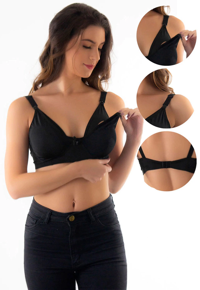 Kit Camisola Amamentação Confort & Lux + Robe Luxury Rendado Preto | CRB1